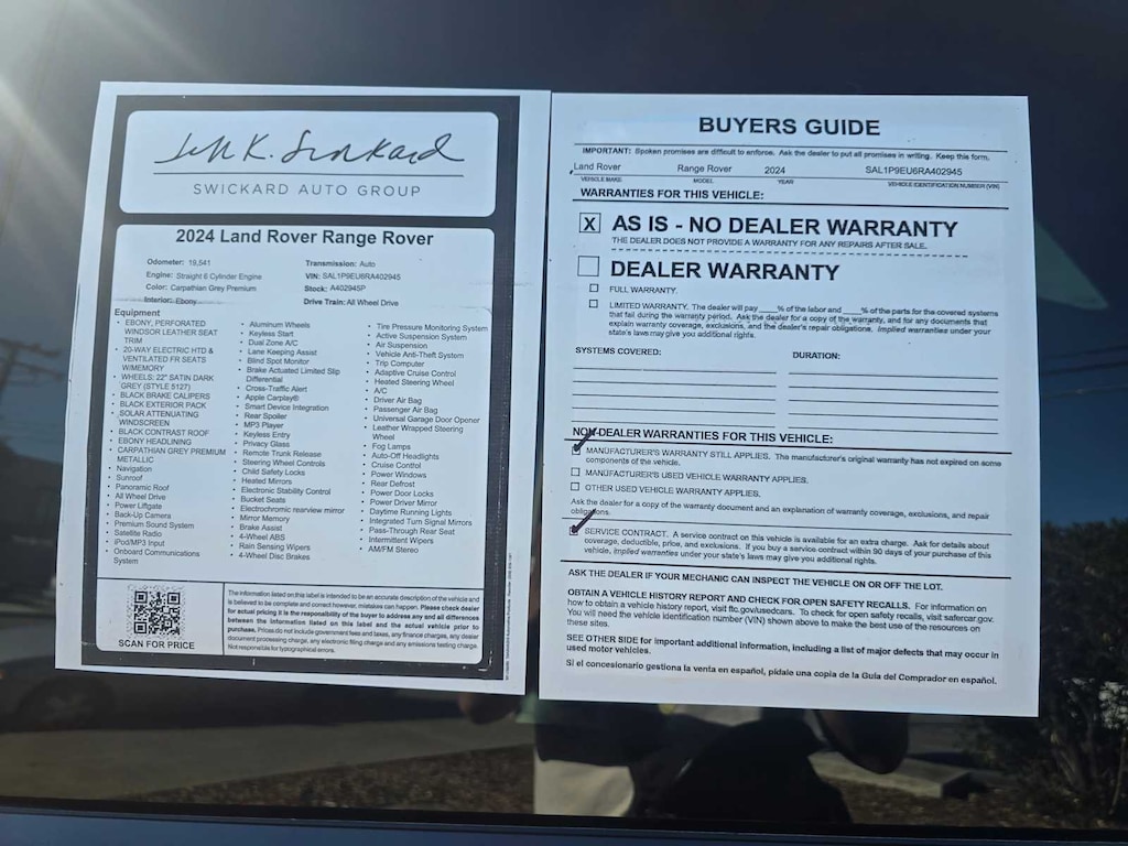 CARPATHIAN GREY PREMIUM METALLIC, WHEELS: 22 SATIN DARK GREY (STYLE 5127): Tires: 22, BLACK CONTRAST ROOF, BLACK EXTERIOR PACK, BLACK BRAKE CALIPERS, 20-WAY ELECTRIC HTD & VENTILATED FR SEATS W/MEMORY: heated and ventilated power recline rear seats, EBONY HEADLINING, SOLAR ATTENUATING WINDSCREEN, EBONY, PERFORATED WINDSOR LEATHER SEAT TRIM, Navigation, Sunroof, Panoramic Roof, All Wheel Drive, Power Liftgate There are no deductibles for service or repairs under the Land Rover limited warranty, Land Rovers must pass a rigorous 165-point inspection process, Complimentary 24/7 roadside assistance, Should you sell your Land Rover, the Certified Vehicle Limited Warranty is fully transferable, Trip interruption benefits include reimbursement for lodging and transport, A comprehensive Vehicle History Report is included, A one year / unlimited miles or a two year / 100,000 miles limited warranty (whichever comes first) All of us here at Land Rover Redwood City are dedicated to the Land Rover name. Were the most centrally and conveniently located of all the Land Rover dealers in the Bay Area, right off Whipple and 101. Our dealership has been open since 1999, so you can rest assured that we know the Land Rover brand.